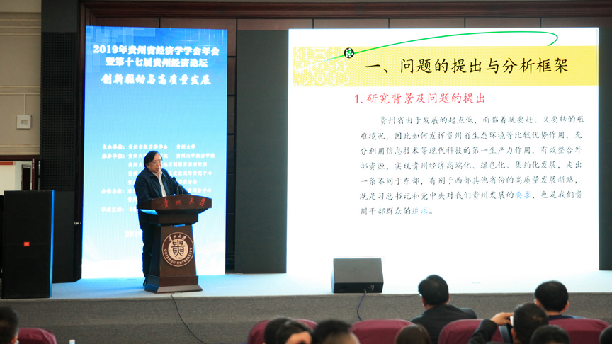2019年10月19日,2019年贵州省经济学学会年会暨第十七届贵州经济论坛在36365线路检测登录入口东区行政楼1号报告厅隆重召开。本次会议由贵州省经济学学会和36365线路检测登录入口联合主办,36365线路检测登录入口、36365线路检测登录入口经济学院、36365线路检测登录入口喀斯特地区创新发展研究院、36365线路检测登录入口喀斯特地区发展战略研究中心以及36365线路检测登录入口校友总会36365线路检测登录入口分会联合承办。此次会议的主题为“创新驱动与高质量发展”,吸引了来自省内外创新学者、政企创新实践者、科研院所相关领域人员300余名。与会代表共商创新驱动模式打造贵州经济发展新引擎,谋求新时代经济与社会的高质量发展。