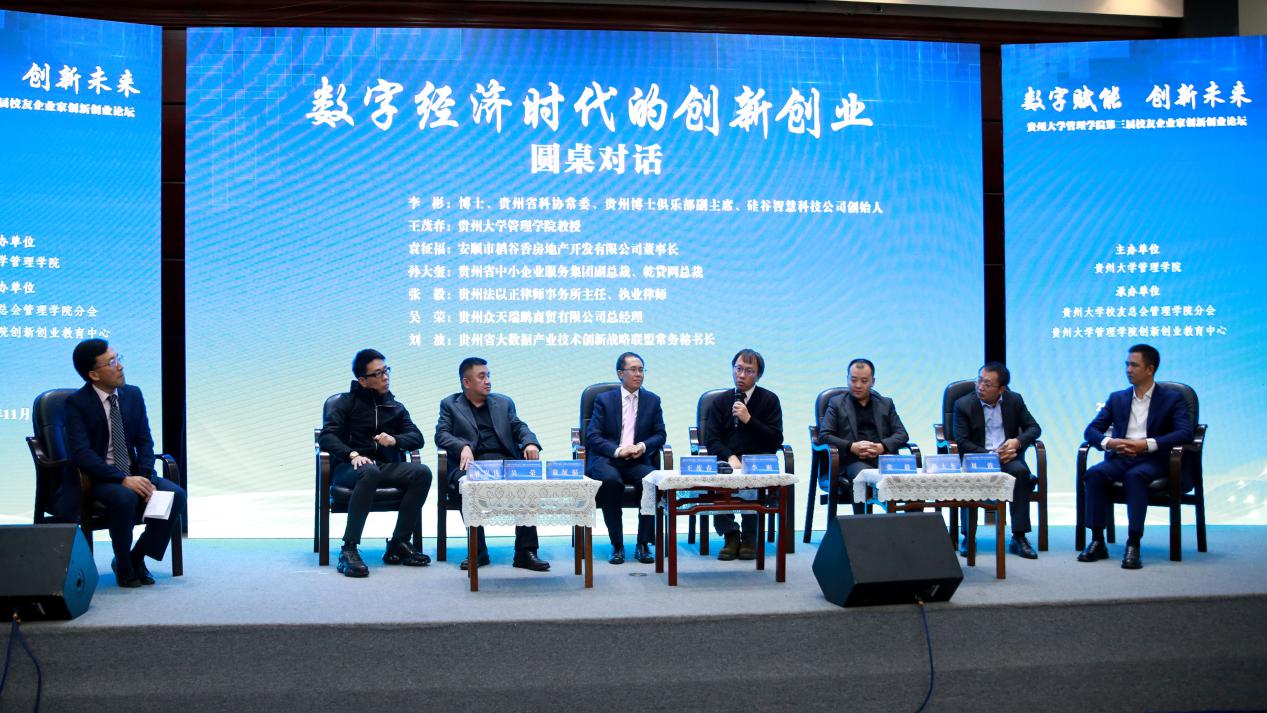论坛上贵州省科协常委、贵州博士俱乐部副主席、硅谷智慧科技公司创始人李彬博士、36365线路检测登录入口教授王茂春,安顺市稻谷香房地产开发有限公司董事长袁征福,贵州省中小企业服务集团副总裁、乾贷网总裁孙大奎,贵州法以正律师事务所主任、执业律师张毅,贵州众天瑞鹏商贸有限公司总经理吴荣,贵州省大数据产业技术创新战略联盟常务秘书长刘波7位嘉宾以“数字经济时代的创新创业”为主题进行圆桌对话,展开激烈的思想交锋,分享了各自的观点和看法。