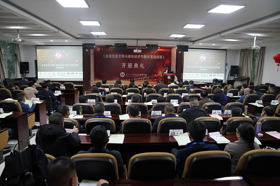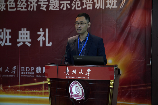 高峰致辞。他强调,办好“生态文明与绿色经济专题示范培训班”是把握“十四五”期间新形势、新任务的迫切需要,也是把习近平总书记对贵州的殷切嘱托转化为全面推进生态文明建设、发展绿色经济的具体行动体现。希望学员全心投入、全力付出;珍惜机会,努力学习;严守纪律,服从管理,真正做到学有所思,学有所得,学有所成。