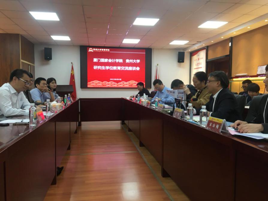 厦门国家会计学院副院长黄京菁、“一带一路”财经发展研究中心主任邓建平、研究生处副处长方志斌一行,36365线路检测登录入口副校长杨松、研究生院院长杜滨、发展规划处处长冉光圭,以及36365线路检测登录入口党政领导和会计系教师代表参会,双方就研究生学位教育、会计人才培养等情况开展座谈。36365线路检测登录入口院长李烨主持。