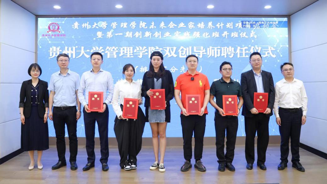 聘任贵州恒丰体育管理有限公司董事长文筱婷,贵州吉源驾驶培训学校有限公司董事长魏大焜,贵州本道创客服务有限公司总经理蒋睿,贵州世纪科环生态农业研究院院长姜蚓,贵州中黔金科产业投资有限公司董事长兼总裁高泳波,贵州悦算科技发展有限公司董事长朱美诗,贵州中房金石房地产开发集团董事长王美艳,中国邮政储蓄银行贵州省分行办公室总经理李星明,上海蚁界直播基地合伙人邓业灿,贵州安能快运物流股份有限公司贵州省总经理彭井飞,贵阳中财会计培训学校校长刘丽为学院“双创”导师。