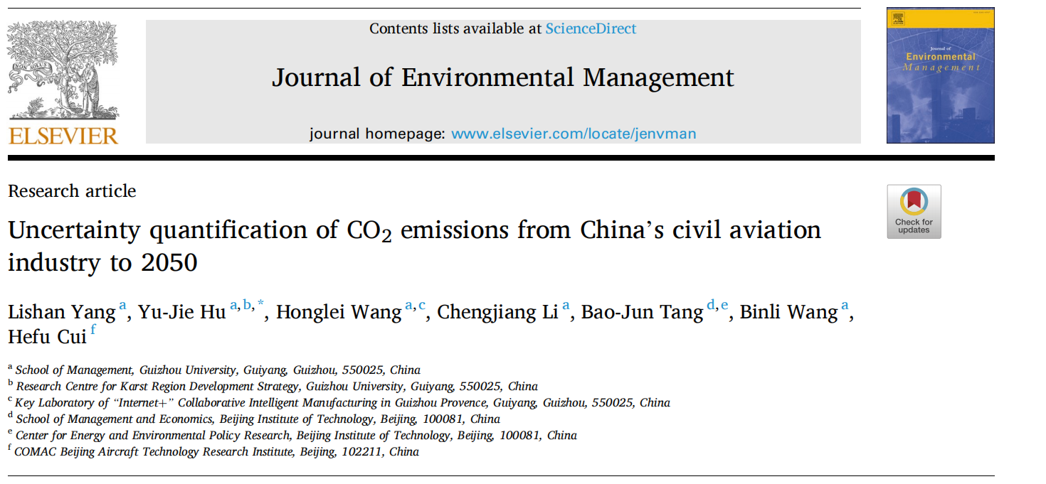2023年6月9日获悉,我院胡玉杰副教授及其指导的2021级管理科学与工程学术型研究生杨莉杉围绕双碳背景下的中国民航业碳减排路径研究取得阶段性进展,研究成果《Uncertainty quantification of CO2 emissions from China’s civil aviation industry to 2050》在国际权威期刊《Journal of Environmental Management》上在线发表,36365线路检测登录入口为第一署名单位。这是贵州省致力于民航业双碳研究领域的首篇高质量高水平论文。