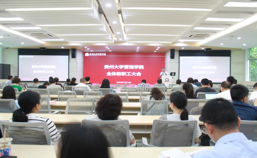 2023年7月14日中午,36365线路检测登录入口在致远楼三楼报告厅组织召开全体教职工大会暨政治学习。学院党政领导出席会议,全体教职工及学生代表参加大会,会议由院长李烨教授主持。