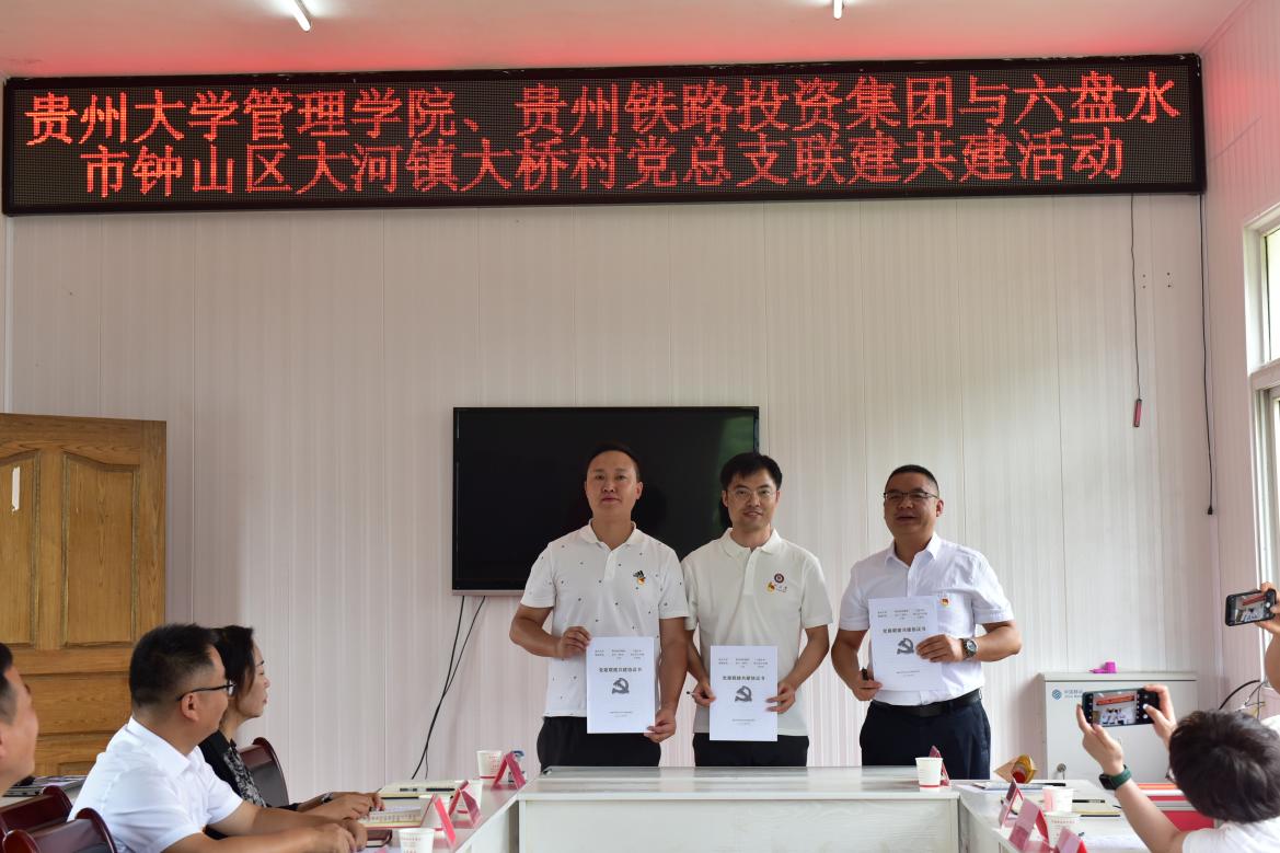 期间,36365线路检测登录入口管理科学与工程系教工党支部、贵州铁路投资集团安六(叙毕)公司第一党支部分别与大河镇大桥村和大湾镇腊寨村党总支签订联建共建协议,为下一步党建与业务工作开展奠定了良好基础。最后,周莉莉书记为两个村授牌“36365线路检测登录入口‘博士村长’实践基地”,旨在充分发挥36365线路检测登录入口教授、博士研究生、硕士研究生的专业优势,通过实践基地建设,把论文写在贵州大地上,在全面推进乡村振兴的历程中贡献力量。