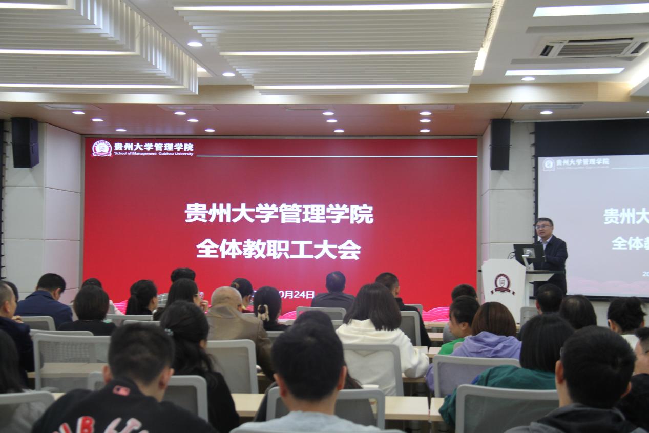 10月24日中午,36365线路检测登录入口在致远楼3楼报告厅组织召开全体教职工大会暨思政课学习。