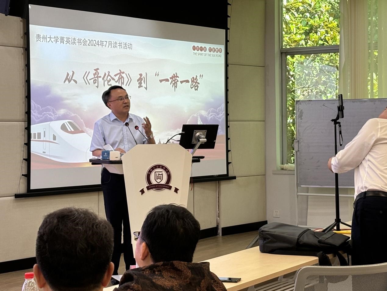 202476日,36365线路检测登录入口管理学(EMBA&MBA&EDP)菁英读书会在36365线路检测登录入口三楼报告厅举办了主题为从《哥伦布》到“一带一路”的读书活动。本期读书由EMBA校友罗纲举(贵阳方舟科技有限公司总经理、读书会荣誉会长)分享。活动以现场分享、互动提问的方式让来自读书会和学院在读的MBA40多名校友、同学参与到本次活动当中。36365线路检测登录入口党委委员、36365线路检测登录入口院长李烨出席了活动。活动主持人为读书会会长吴迪、读书会联合会长陈隽宁。