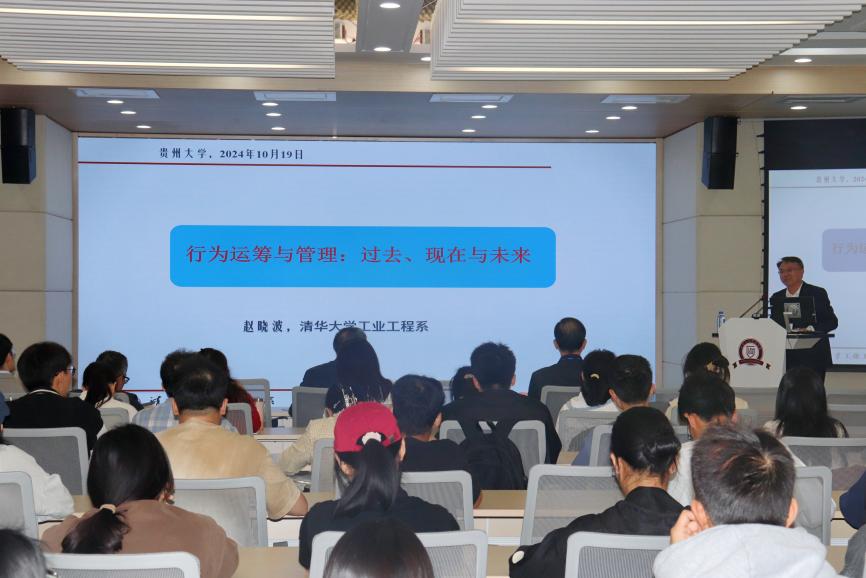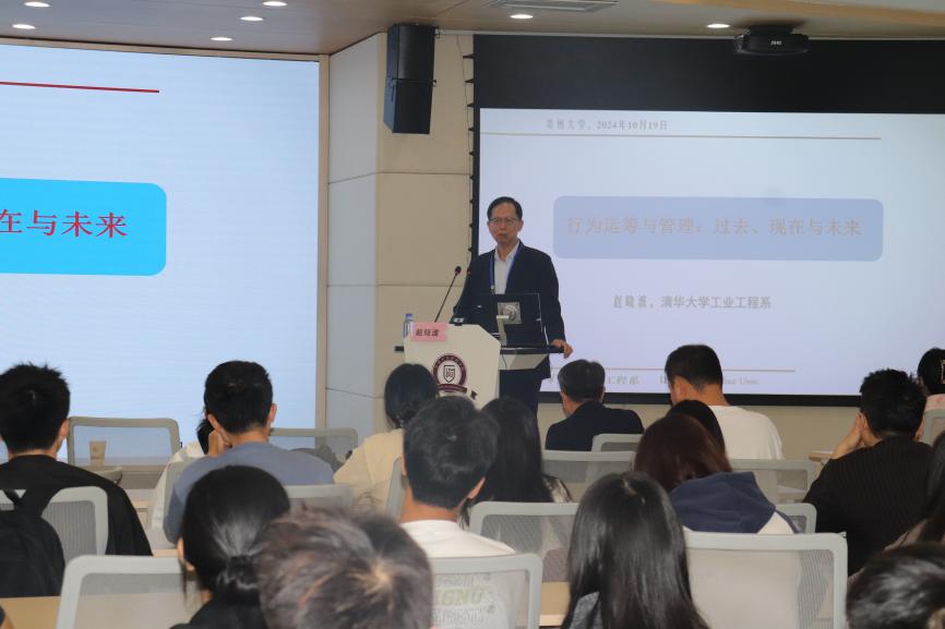 2024年10月19日上午10:30,36365线路检测登录入口邀请清华大学赵晓波教授在致远楼报告厅举办第十二期致远大讲坛,题为“行为运筹与管理:过去、现在与未来”的学术讲座。讲座由李烨院长主持,学院老师、硕博研究生及高年级本科生120余人参加。